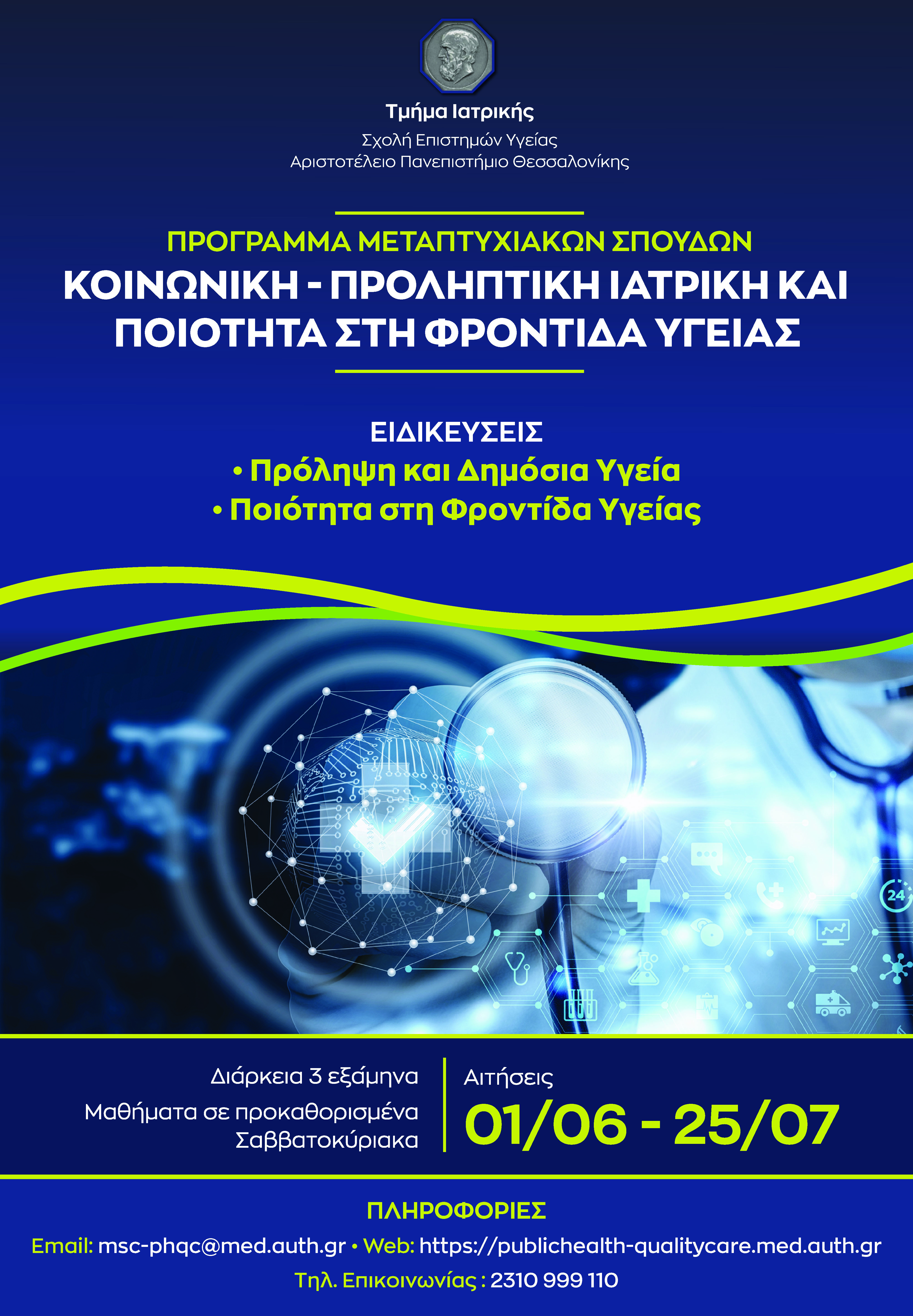 για Προκήρυξη του Π.Μ.Σ. "Κοινωνική-Προληπτική Ιατρική και Ποιότητα στη Φροντίδα Υγείας"