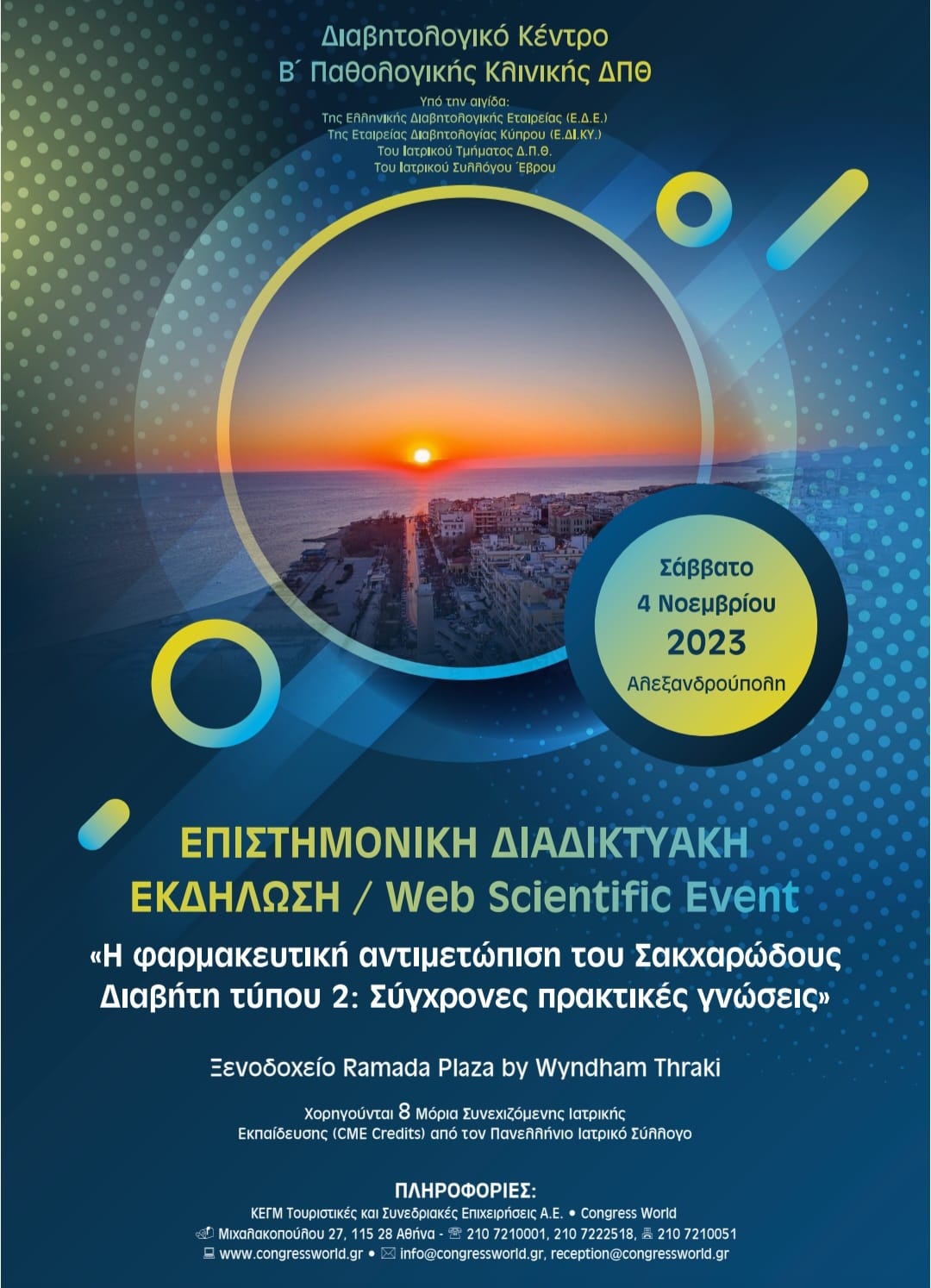 για Επιστημονική Διαδικτυακή Εκδήλωση: "Η φαρμακευτική αντιμετώπιση του Σακχαρώδους Διαβήτη τύπου 2: Σύγχρονες πρακτικές γνώσεις"