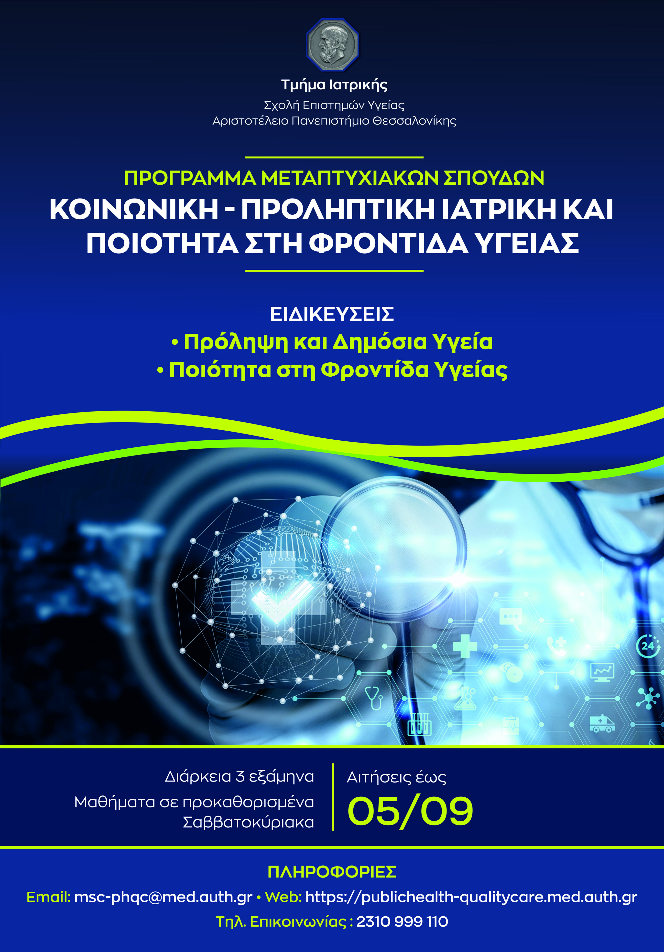 Προκήρυξη του Προγράμματος Μεταπτυχιακών Σπουδών "Κοινωνική - Προληπτική Ιατρική και Ποιότητα στη Φροντίδα Υγείας", του Τμήματος Ιατρικής του ΑΠΘ, Παράταση Υποβολής Αιτήσεων