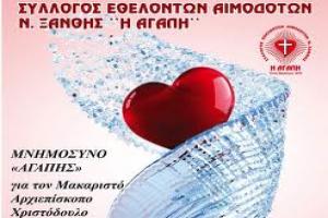 Εθελοντική Αιμοδοσία –Μνημόσυνο «ΑΓΑΠΗΣ» για Μακαριστό Χριστόδουλο