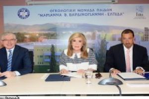Εν συνεχεία, παίρνοντας τον λόγο η Πρόεδρος του Συλλόγου «ΕΛΠΙΔΑ», κυρία Μαριάννα Β. Βαρδινογιάννη, υπογράμμισε: «Η σημερινή ημέρα αποτελεί σταθμό στην ιστορία της ΕΛΠΙΔΑΣ και θεμέλιο του τέταρτου μεγάλου βήματος που κάνει για να ενισχύσει τον μεγάλο αγώνα για τη σωτηρία εκατοντάδων παιδιών που πάσχουν από καρκίνο... Μετά την Μονάδα Μεταμόσχευσης Μυελού των Οστών, τον Ξενώνα και το πρώτο Ογκολογικό Νοσοκομείο για Παιδιά στην Ελλάδα, επισημοποιεί σήμερα τη θεμελίωση τριών νέων προγραμμάτων της... Το πρώτο είναι η δημιουργία Τράπεζας Εθελοντών Δοτών Μυελού των Οστών. Η λειτουργία της Τράπεζας θα πολλαπλασιάσει τις πιθανότητες εύρεσης συμβατού μοσχεύματος μυελού για παιδιά που χρειάζονται μεταμόσχευση. Αυτή η διαδικασία θα γίνεται πλέον δωρεάν, ενώ μέχρι πριν λίγο καιρό οι γονείς έπρεπε να πληρώνουν για το μόσχευμα 15.000 ευρώ σε Τράπεζα της Ευρώπης ή 30.000 δολάρια σε Τράπεζα της Αμερικής. Η Τράπεζα θα στεγάζεται στο Ογκολογικό μας Νοσοκομείο και, αμέσως μετά τη σημερινή υπογραφή της σύμβασης, θα ξεκινήσουν οι εργασίες διαμόρφωσης των χώρων, που βασίζονται σε μελέτη που έχει ήδη ολοκληρωθεί. Τα έξοδα για όλη αυτή τη διαδικασία αναλαμβάνει η ΕΛΠΙΔΑ... Το δεύτερο πρόγραμμά μας έρχεται να καλύψει μια μεγάλη έλλειψη στον χώρο της υγείας στην Ελλάδα. Αφορά τη δημιουργία Εθνικού Κέντρου Μεταμοσχεύσεων για Παιδιά, όπου θα γίνονται μεταμοσχεύσεις συκωτιού, πνεύμονα και νεφρών. Μέχρι τώρα τα παιδιά έπρεπε να μεταφέρονται σε νοσοκομεία του εξωτερικού για να εγχειριστούν. Έχουμε ήδη τη σύμφωνη γνώμη του καθηγητή Ανδρέα Τζάκη, καθώς αυτός και η ομάδα του θα μας βοηθήσουν πολύ και θα αναλάβουν ένα μεγάλο μέρος του έργου αυτού... Το τρίτο πρόγραμμα αφορά τη δημιουργία Κέντρου Αριστείας, δηλαδή ερευνητικού κέντρου για την εξειδικευμένη έρευνα κατά του παιδικού καρκίνου. Με τον τρόπο αυτό θα δίνεται η δυνατότητα για μεμονωμένες θεραπείες σε συγκεκριμένες περιπτώσεις παιδιών... Για την υλοποίηση των νέων μας αυτών προγραμμάτων δημιουργήθηκε μέσα από τους κόλπους της ΕΛΠΙΔΑΣ ένας νέος σύλλογος με το όνομα «Όραμα ΕΛΠΙΔΑΣ». Το «Όραμα ΕΛΠΙΔΑΣ» θα εργάζεται συμπληρωματικά προς την ΕΛΠΙΔΑ και θα εκτελεί πιο εξειδικευμένο έργο, αποκλειστικά για τα τρία αυτά προγράμματα...».