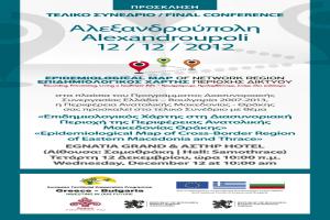 Σας επισυνάπτουμε πρόσκληση συμμετοχής στο τελικό συνέδριο, το οποίο διοργανώνεται στην Αλεξανδρούπολη την Τετάρτη 12 Δεκεμβρίου και ώρα 12 μμ στο ξενοδοχείο EGNATIA GRAND & ΑΣΤΗΡ HOTEL (Αίθουσα: Σαμοθράκη)