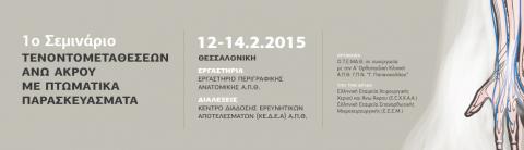 1ο Σεμινάριο τενοντομεταθέσεων άνω άκρου σε πτωματικά παρασκευάσματα», 12-14 Φεβρουαρίου 2015, Θεσσαλονίκη