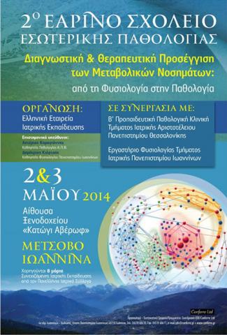 2ο Εαρινό Σχολείο Εσωτερικής Παθολογίας, Διαγνωστική & Θεραπευτική Προσέγγιση των Μεταβολικών Νοσημάτων: από τη Φυσιολογία στην Παθολογία, 2 & 3 Μαϊου 2014, Μέτσοβο Ιωαννίνων