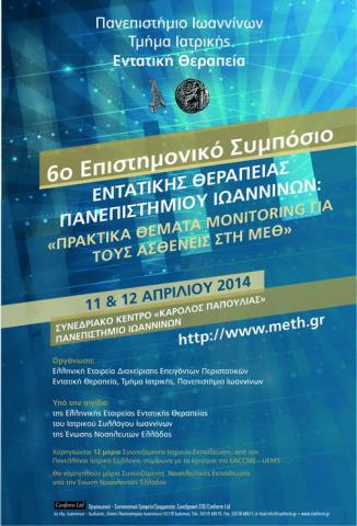 6ο ΕΠΙΣΤΗΜΟΝΙΚΟ ΣΥΜΠΟΣΙΟ ΚΛΙΝΙΚΗΣ ΕΝΤΑΤΙΚΗΣ ΘΕΡΑΠΕΙΑΣ ΠΑΝΕΠΙΣΤΗΜΙΟΥ ΙΩΑΝΝΙΝΩΝ «ΠΡΑΚΤΙΚΑ ΘΕΜΑΤΑ MONITORING ΓΙΑ ΤΟΥΣ ΑΣΘΕΝΕΙΣ ΣΤΗ ΜΕΘ», 11 & 12 ΑΠΡΙΛΙΟΥ 2014, ΣΥΝΕΔΡΙΑΚΟ ΚΕΝΤΡΟ «ΚΑΡΟΛΟΣ ΠΑΠΟΥΛΙΑΣ», ΠΑΝΕΠΙΣΤΗΜΙΟ ΙΩΑΝΝΙΝΩΝ